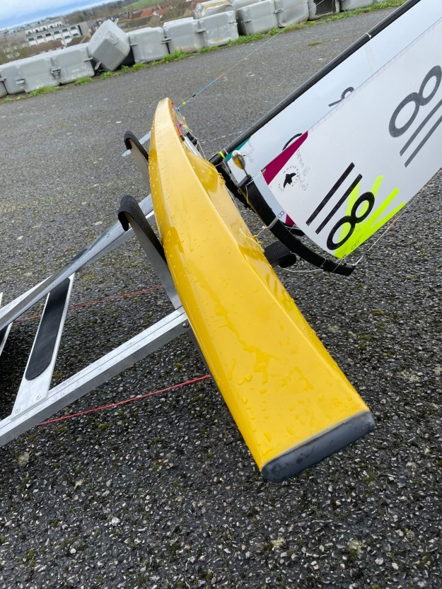 Hugh’s F6 Marblehead has had a winter refit and come out this very classy colour of yellow!!
