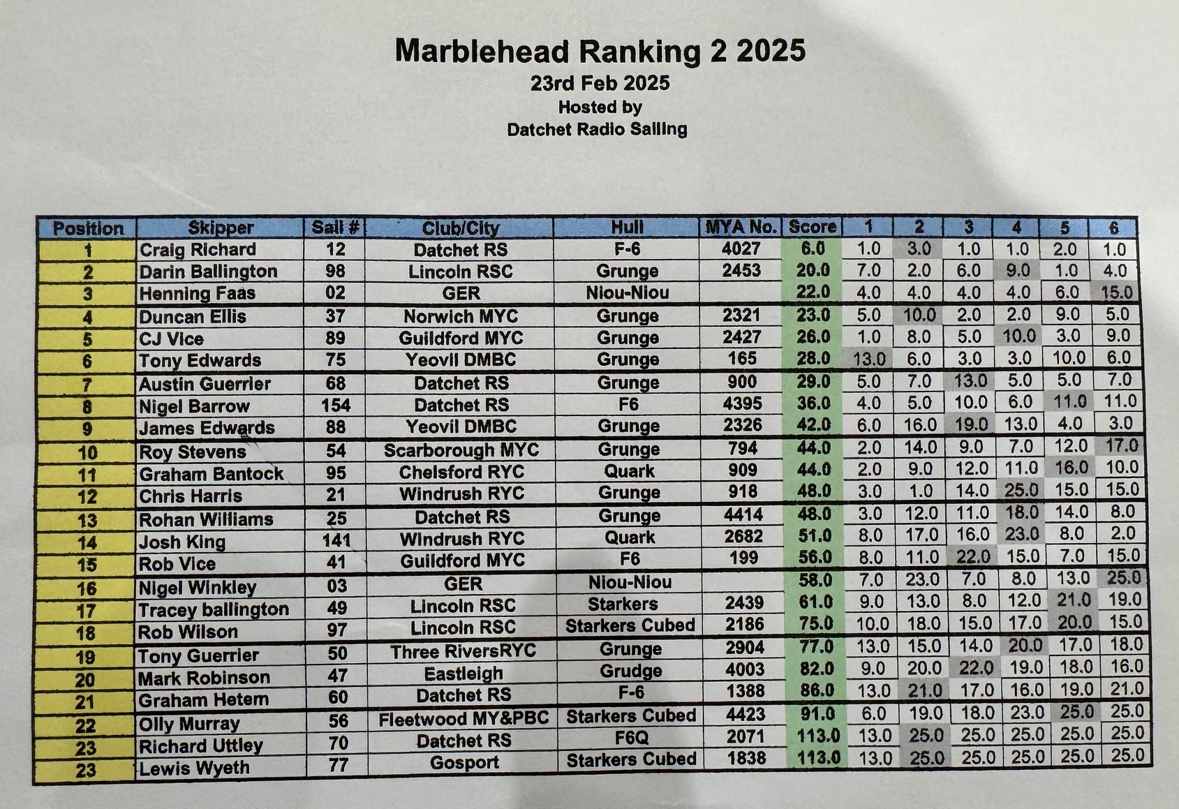Marblehead Ranking 2 – Blowy Day !! Leave a reply Final results of Marblehead Ranking 2 !! Full report to follow. Share this: Click to share on X (Opens in new window) X Click to share on Facebook (Opens in new window) Facebook Like Loading... Related