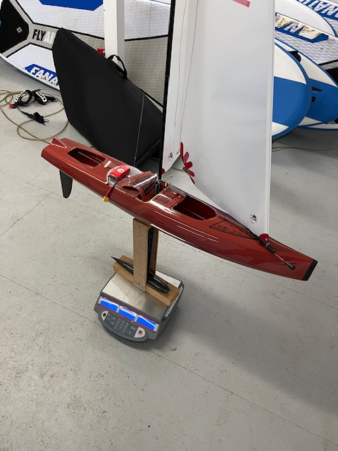 I’m ‘off games’ so was delighted to find Hugh and Rob V measuring up Rob’s new F6 Marblehead which Rob hopes to campaign to the Worlds.