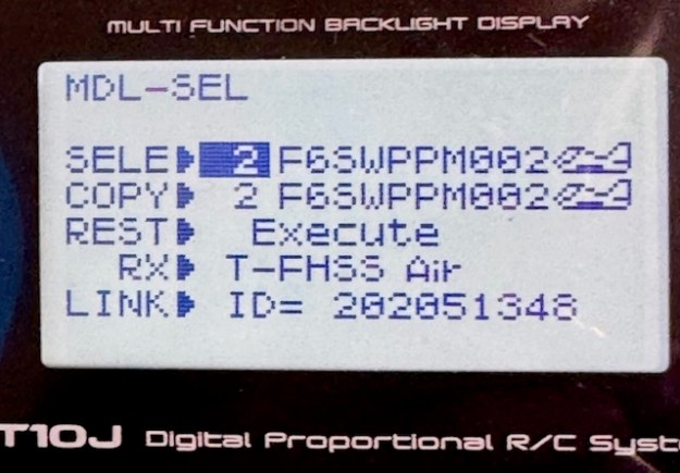 I thought it would be the same on my Futaba T6 but instead of XXXXXXX it said “221850611”