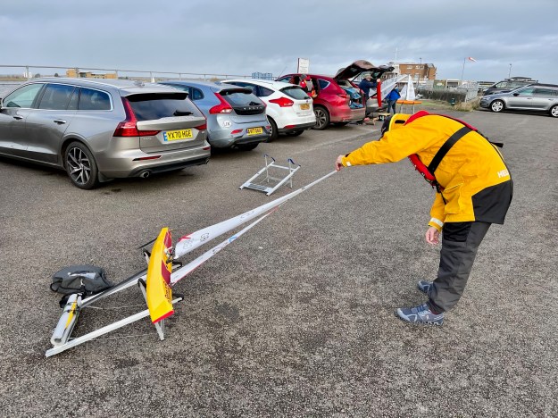 SailboatRC recommend leaving the IOM fin on, so I religiously do so – and have one of those lovely Potter Onesie padded bags for the whole thing. The fin is attached with an M3 bolt, needing a 2.5mm hex key.