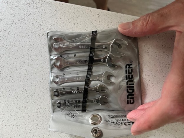 The ratchet on the handle is a dream for putting our long fin bolts in and out. Love it. Plenty of space in the tool box too. It comes with a little pouch, but my preference has come to be keeping the subset I need in a neat translucent plastic box – which turns out to be an old business. card box. I knew I’d find a use for those one day 🙂